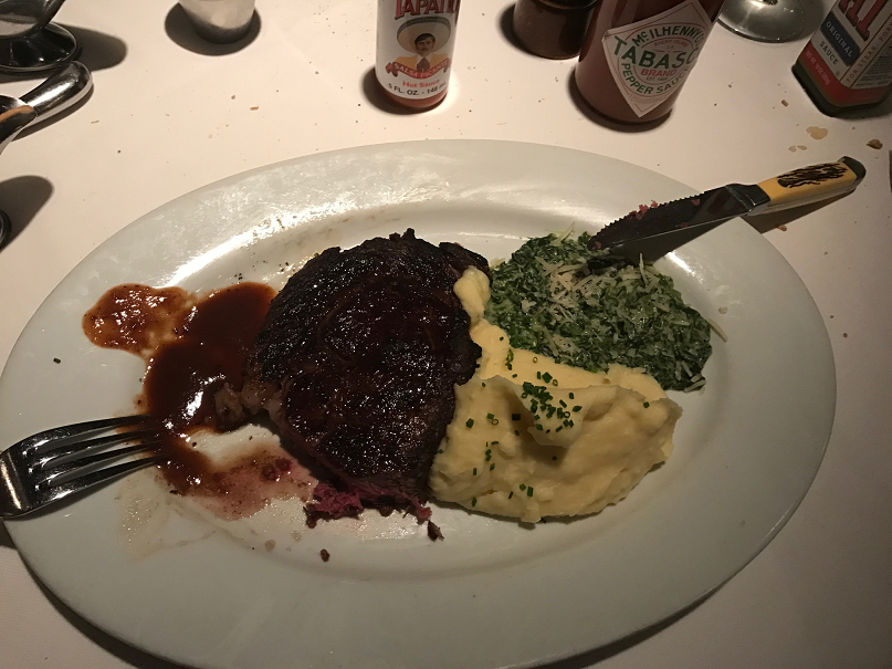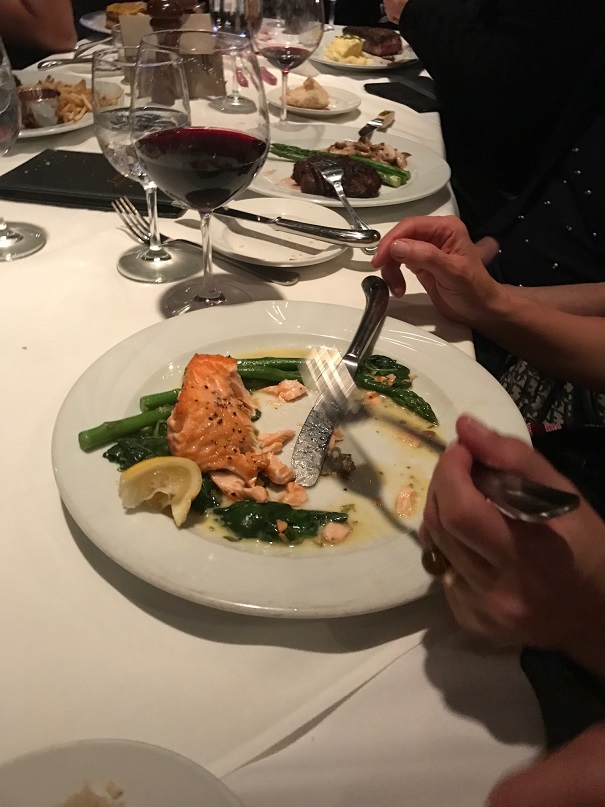 We went to this restaurant for the first time in a large group. I had the rib eye steak which was tender inside and a bit burned on the surface to keep the juice. It was cooked very professionally. The restaurant tasty burgers, salmon and great salad. I think it has a meal for every taste. We will d