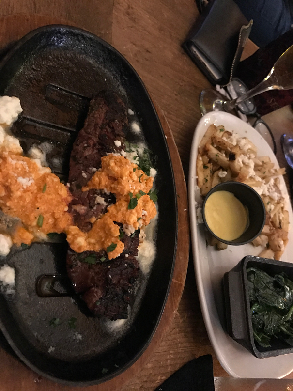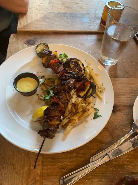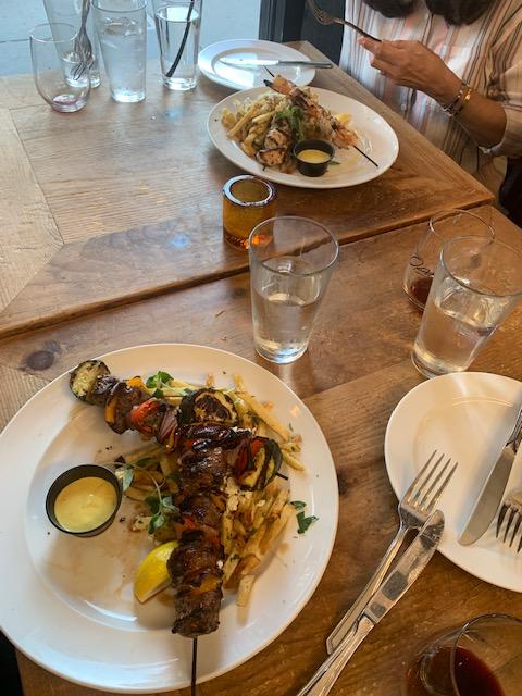 I had the flank steak that was great. The beef souvlaki was cold when the food was served. I like the fact you can bring your own vine and there is no charge to have it.