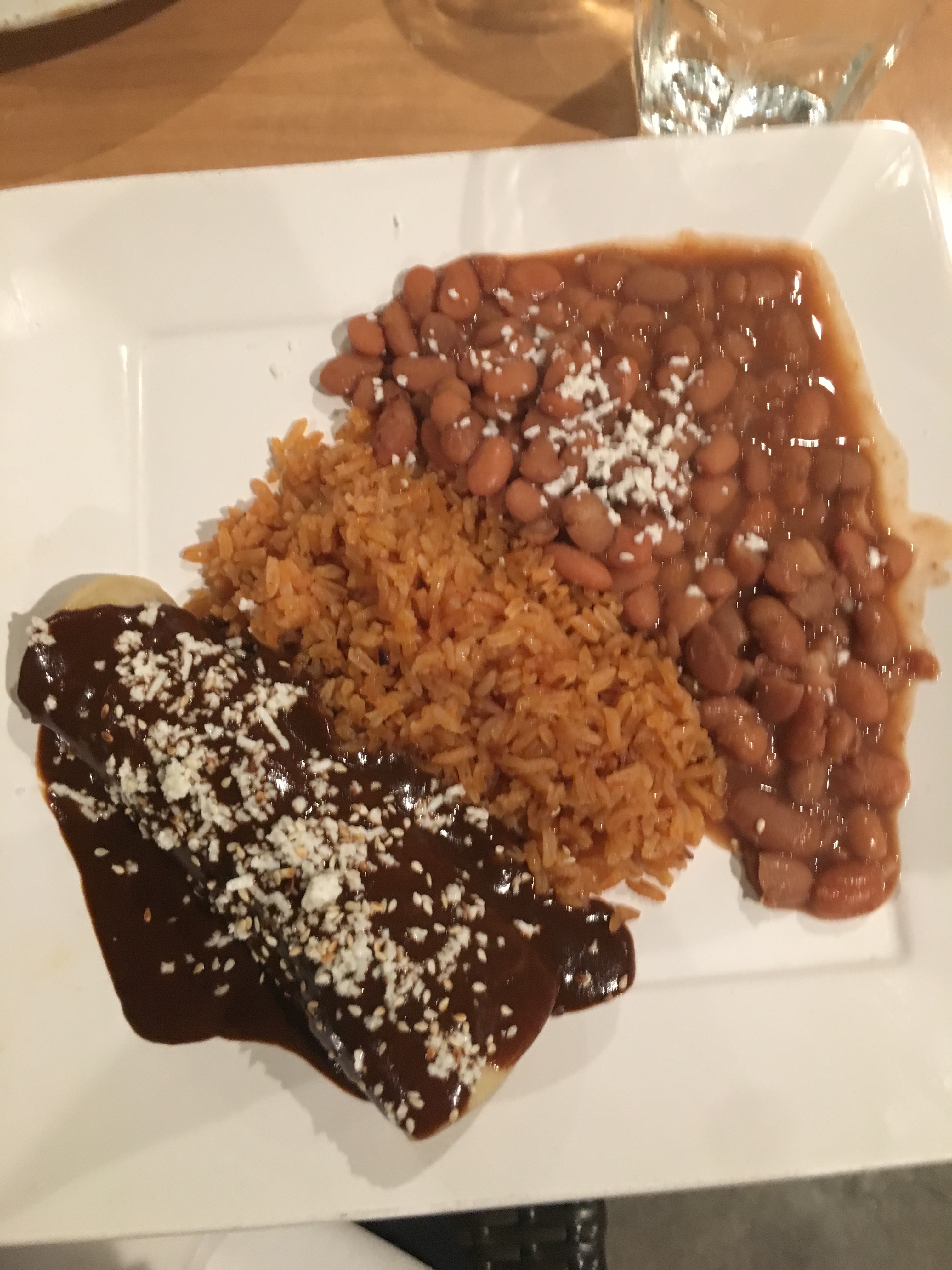 Came here in the middle of the week for dinner. Ordered chips and salsa for apps. You can tell they're made fresh; they came out hot! I normally can't finish my entire plate when I go out to eat, but the chicken mole enchilada was so good I ate every. last. bit.